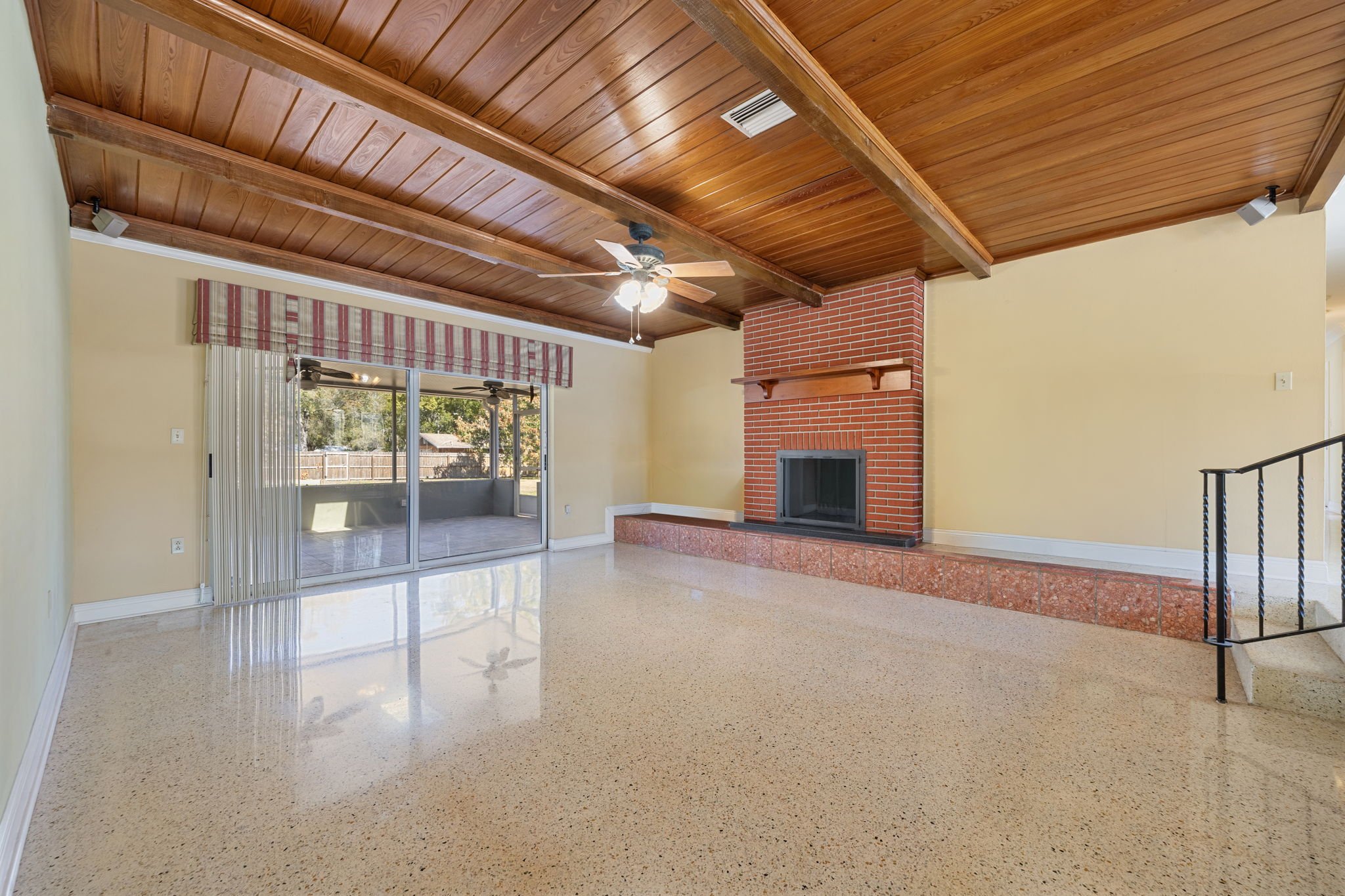 Tongue-and-groove wood ceiling